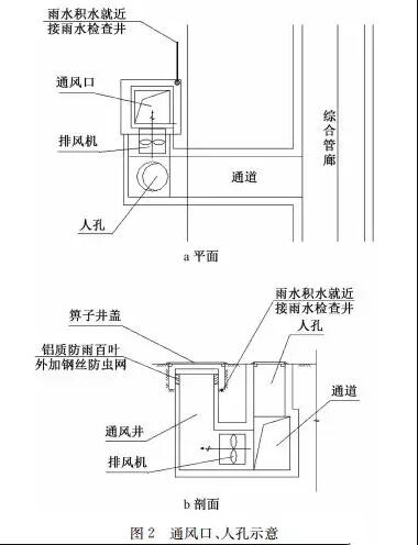 (2)其中一部分綜合管廊人員主要出入口與臨街建筑相結(jié)合,直接設(shè)在室內(nèi)。